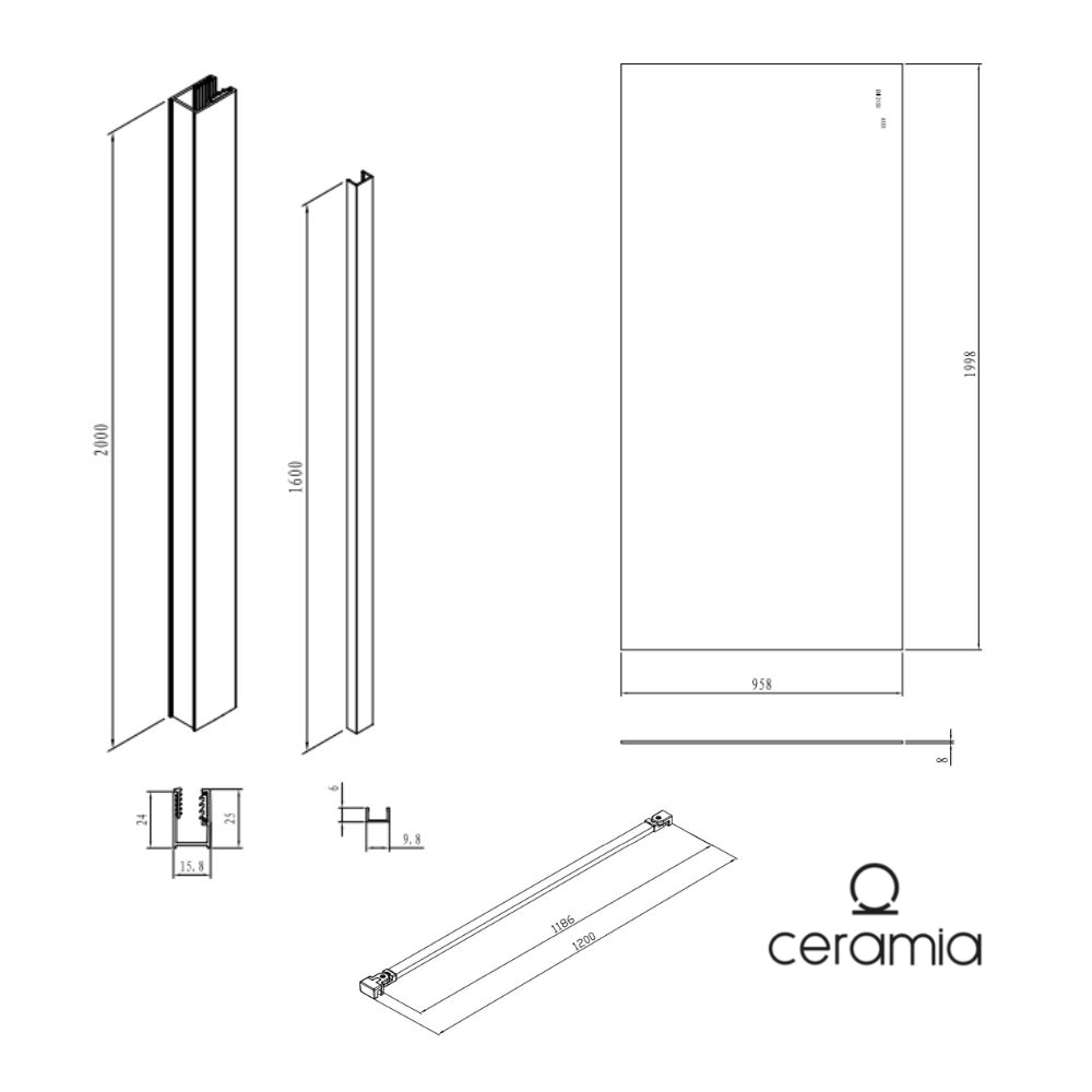 Caractéristiques de la paroi de douche Walk-In anticalcaire avec profilés et bras noir mat (CERABWISR01-100B) :
