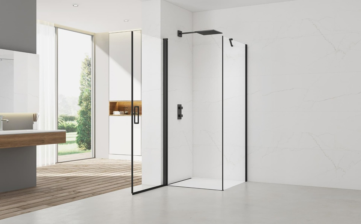 Swiss Aqua Technologies Fusion ensemble porte pivotante /paroi 100x80cm anticalcaire avec profilés noir mat (SATFUD100S80C)