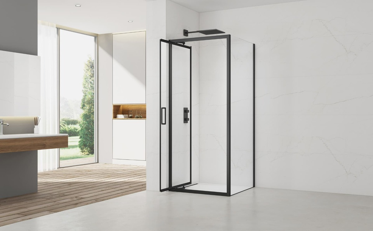 Ajoutez style et praticité à votre salle de bain avec l'ensemble porte à ouverture gain de place Swiss Aqua Technologies TEX-C, équipé d'une paroi anticalcaire de 90x80 cm.
