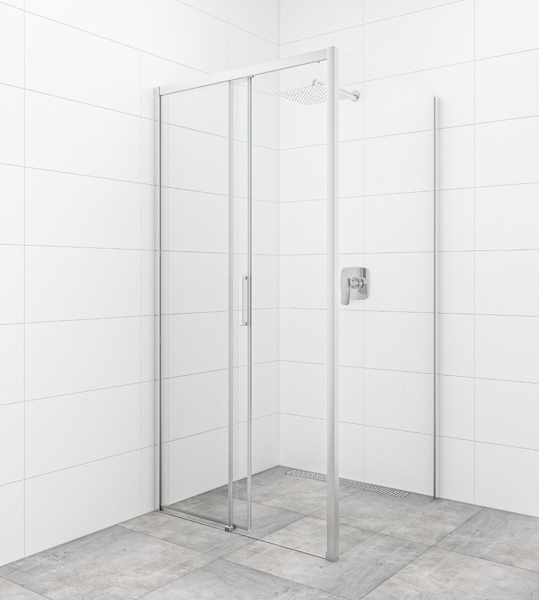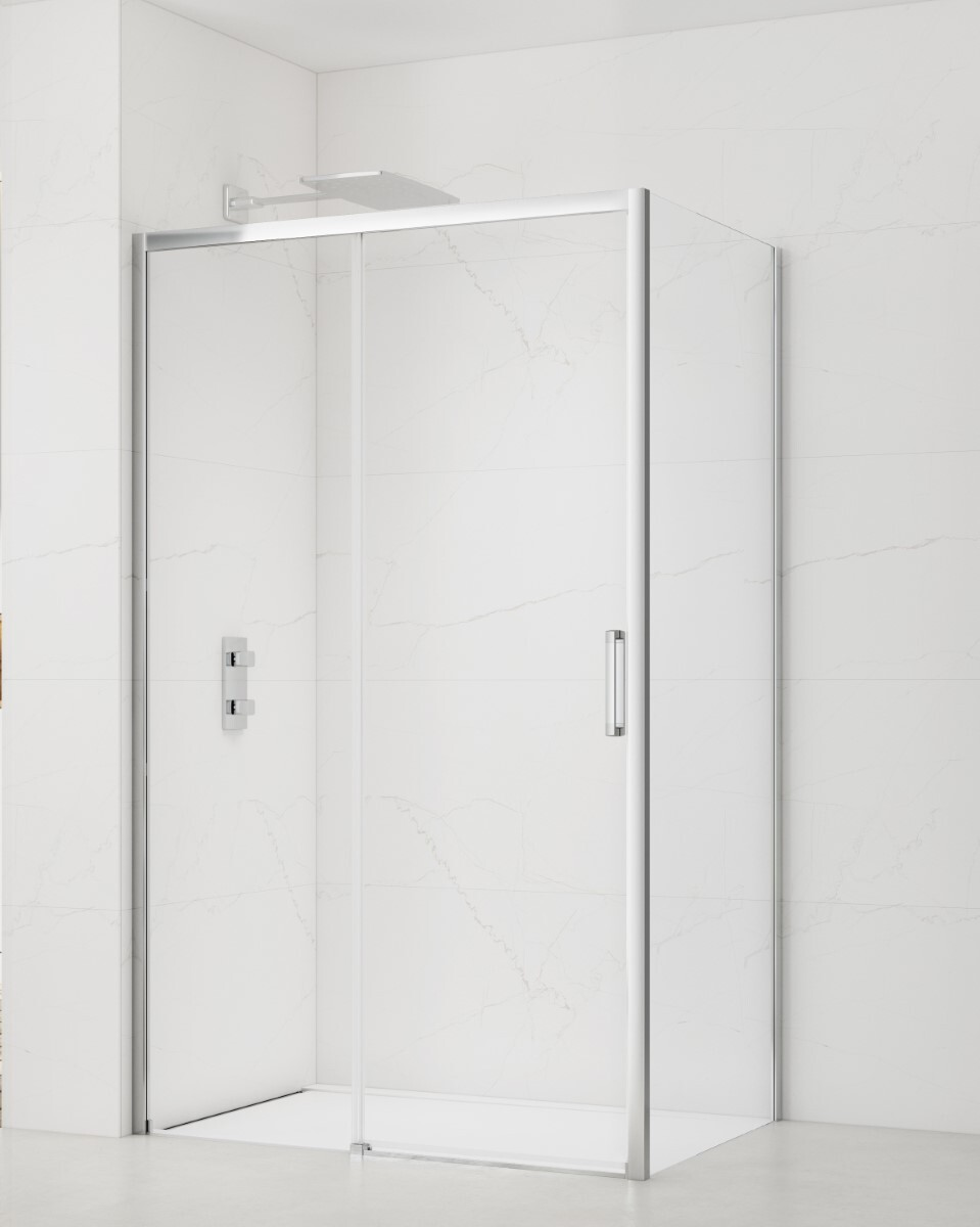 Swiss Aqua Technologies TEX BB ensemble porte coulissante/paroi 100x100cm anticalcaire avec profilés chrome brillant (TEXDBB100S100-SET)