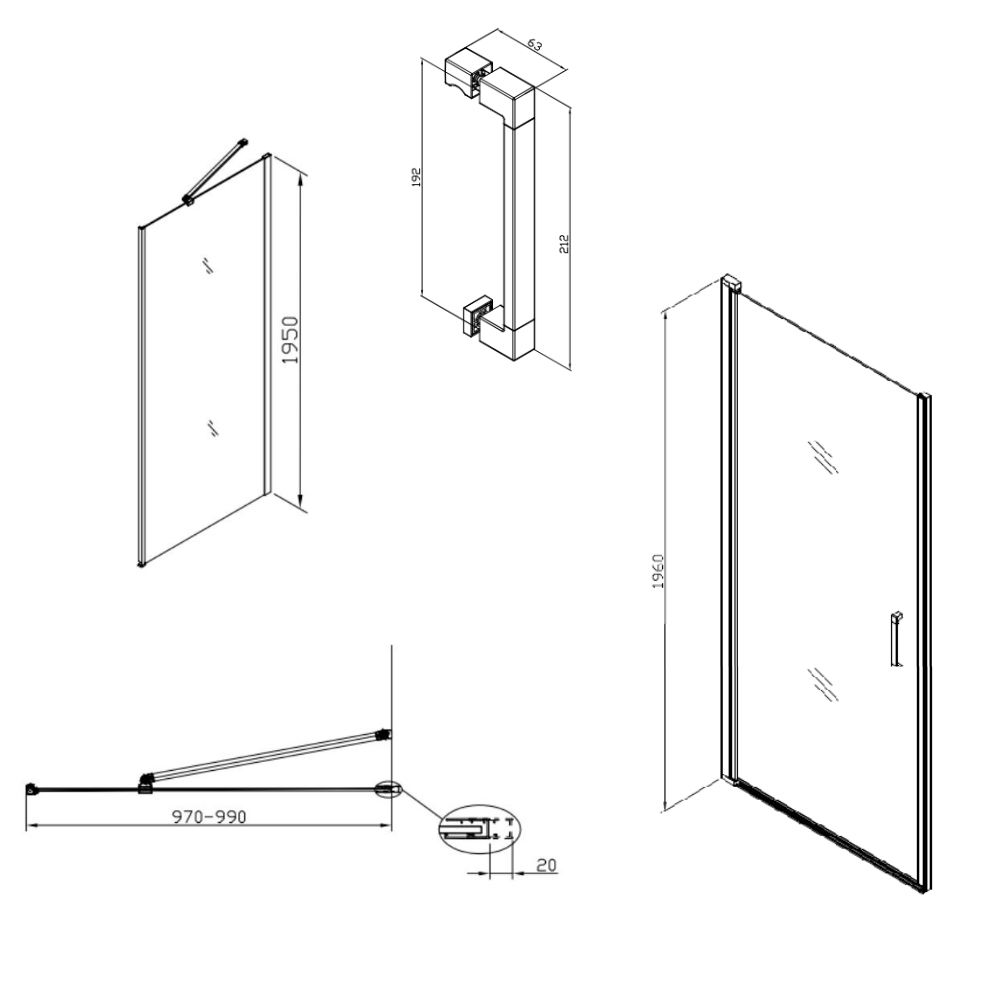 - Verre trempé de sécurité de 6 mm porte et paroi