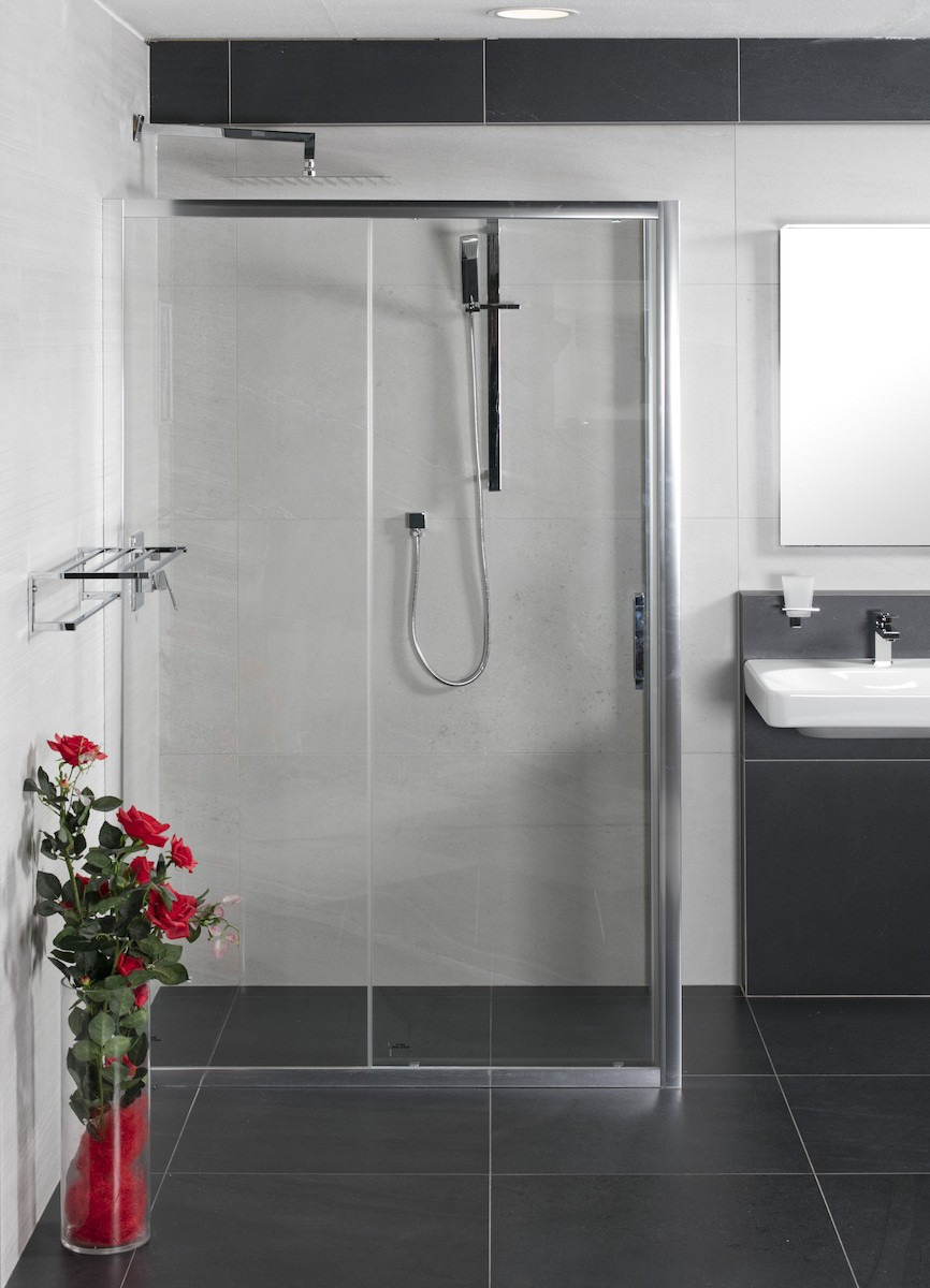 Swiss Aqua Technologies Tex Porte coulissante de douche verre trempé transparent avec glissières silencieuses 140x195cm, Chrome (SIKOTEXD140CRT)