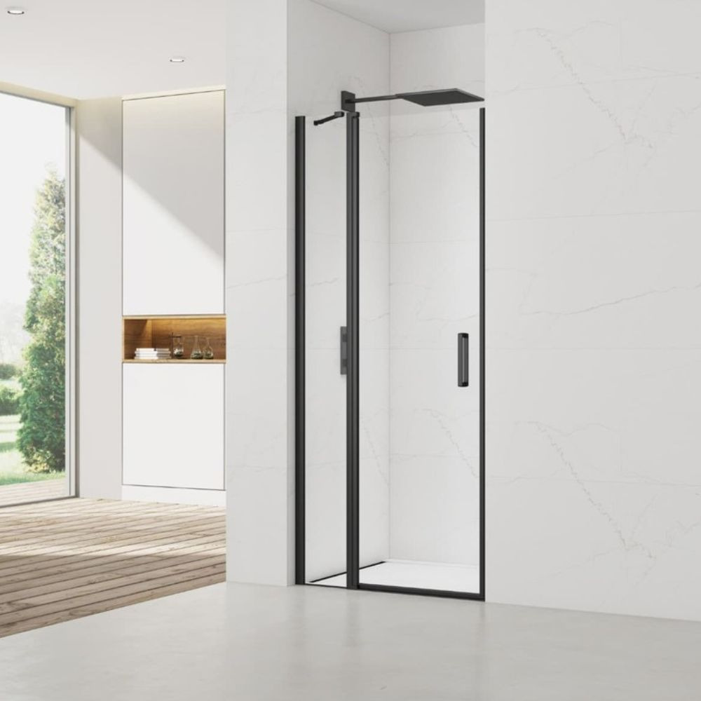 Caractéristiques de la Porte de douche Fusion 100x196cm pivotante anticalcaire avec profilés noir mat (SATFUD80NIKAC) :