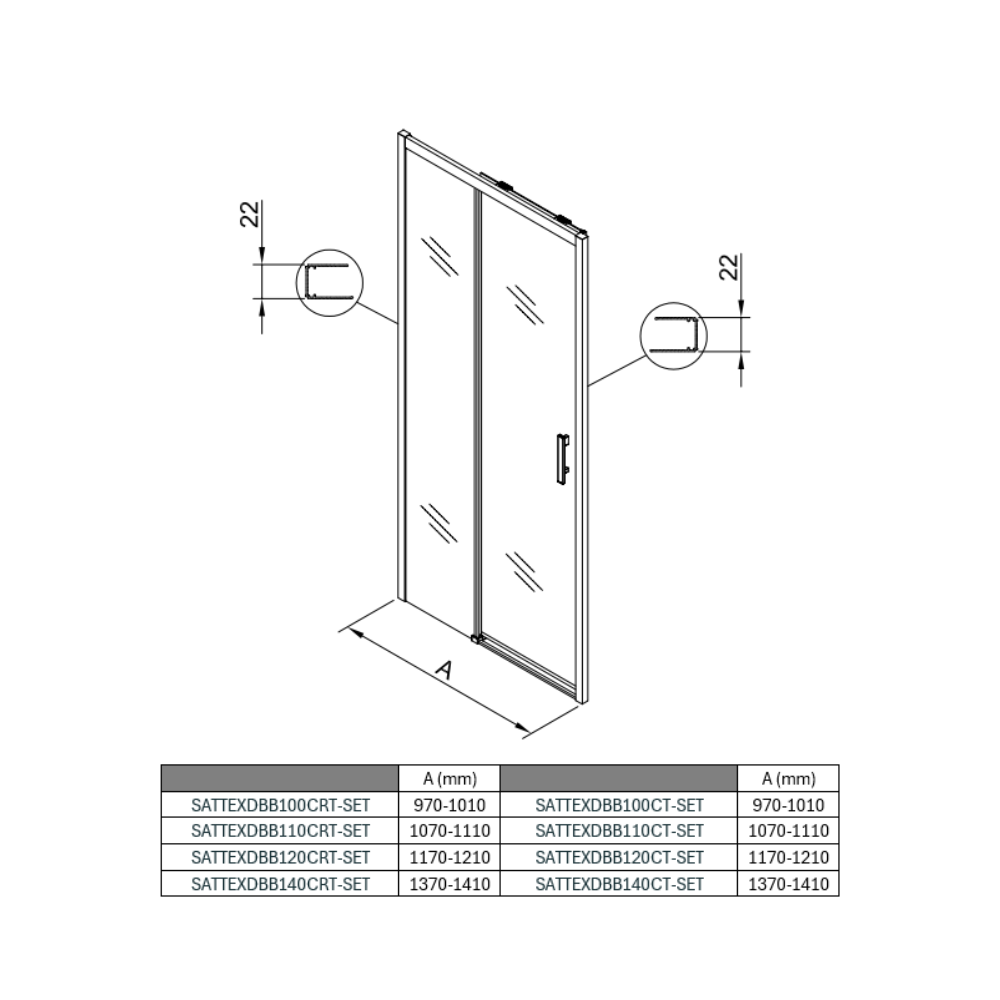 Caractéristiques de la porte de douche TEX BB 110x195cm coulissante anticalcaire avec profilés noir mat (TEXDBB110CT-SET) :