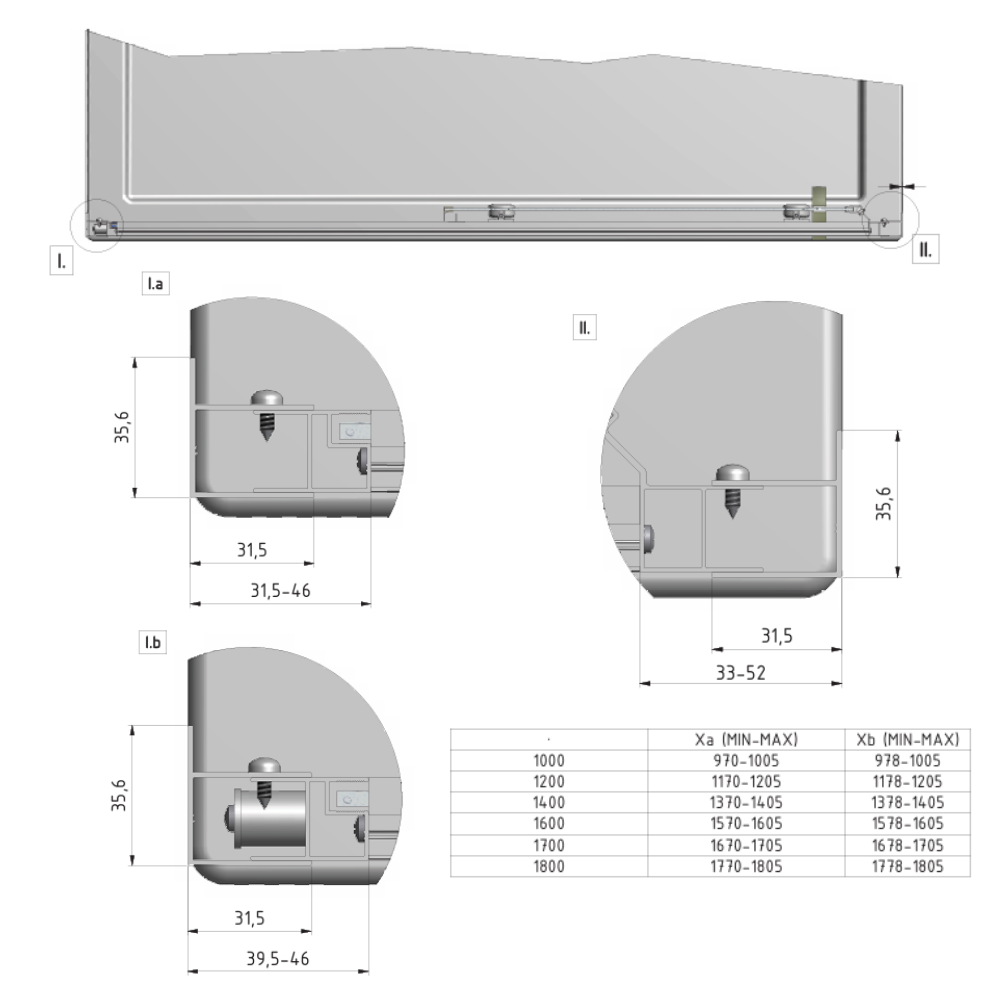 Caractéristiques de la porte de douche 130 cm, orientation gauche et droite avec profilé chrome brillant Roth Lega Line (556-1300000-00-02) :