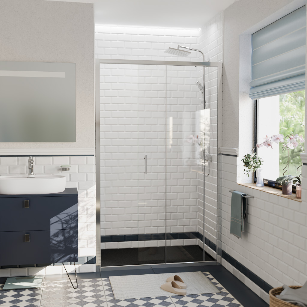 Apportez une touche d’élégance et de praticité à votre salle de bain avec la porte de douche coulissante Pura de Céramia.