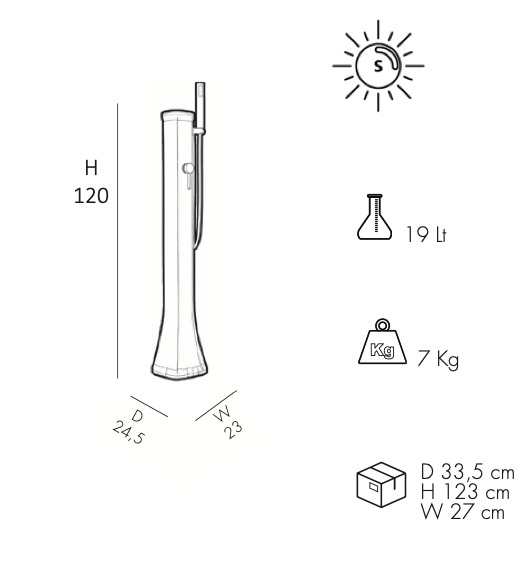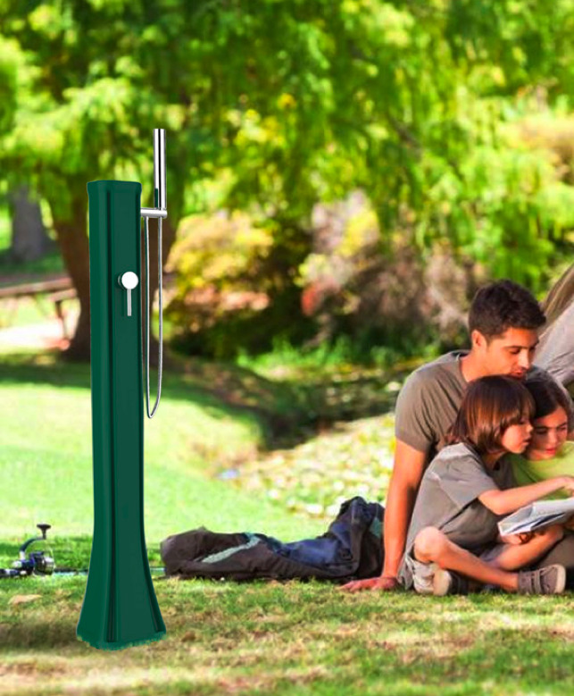 - Fabriquée en polyéthylène HD, c’ est une douche adaptée pour les personnes toujours en déplacement.