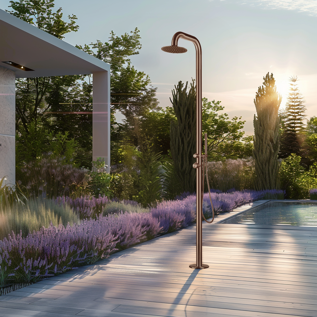Naturel Douche extérieure en acier , eau chaude & froide, grande tête de douche, douchette à main, couleur cuivrée (NATUREL-3HR)