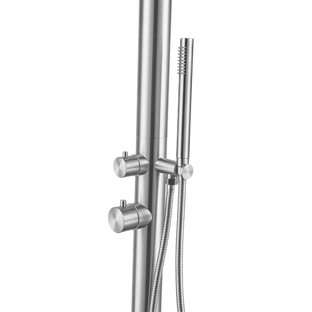 Naturel Douche extérieure intégralement en acier inoxydable, eau chaude et froide, douchette à main, acier brossé (Naturel-LH)