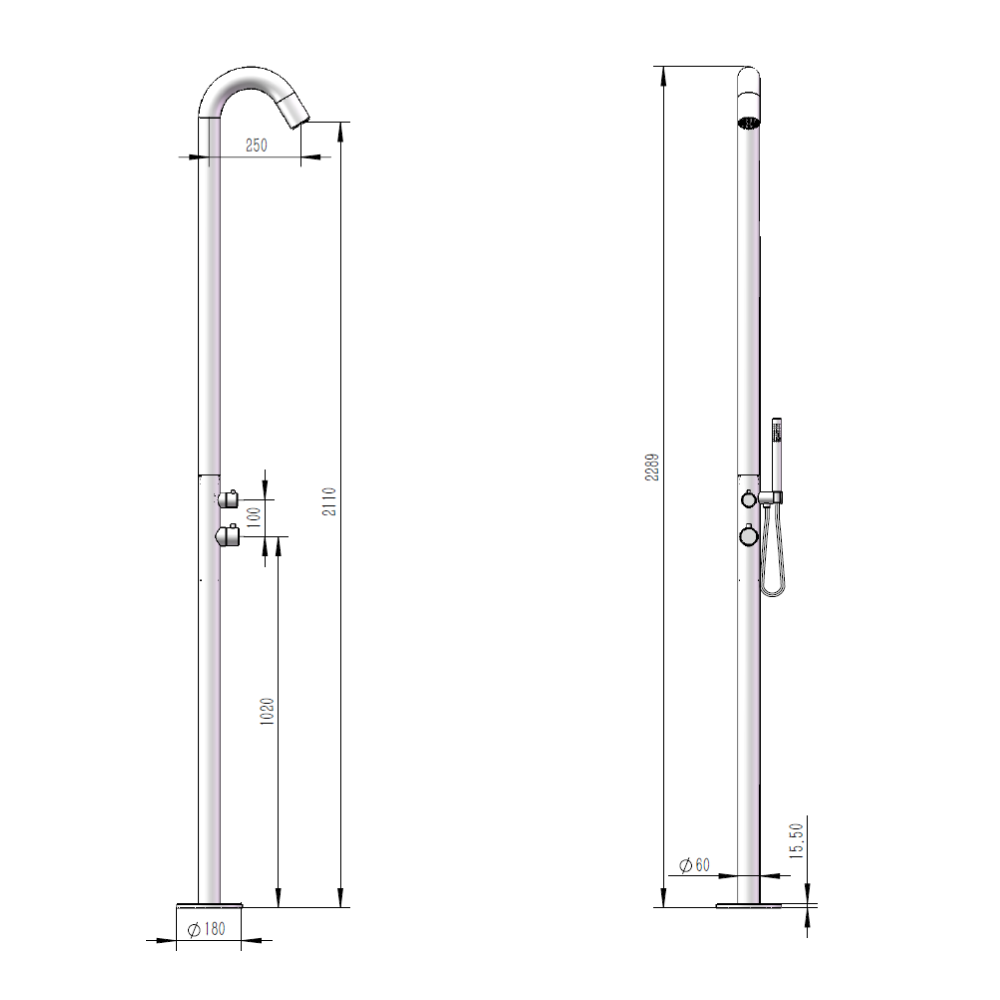 Caractéristiques de la douche extérieure de jardin et piscine, acier inoxydable 316, eau chaude et froide, douchette à main, acier brossé (Naturel-lH)