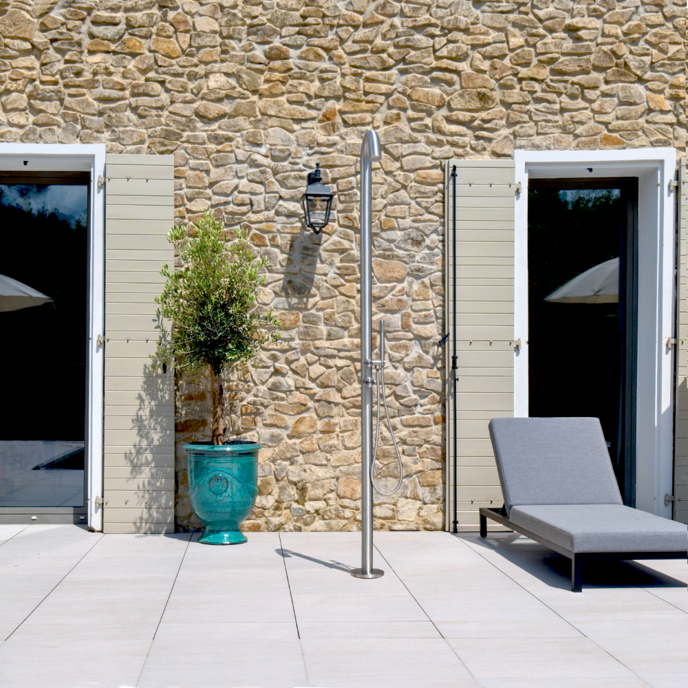 Comment hiverner votre douche : avant les permiers jours de gel, dévissez simplement votre douche extérieure et placez celle-ci dans sa housse de protection, dans un endroit à l'abri du gel. C'est aussi l'occasion de passer un chiffon doux dessus afin de lui conserver tout son éclat.