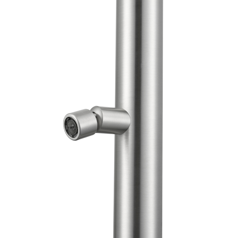 Caractéristiques de la douche extérieure de jardin et piscine, acier inoxydable 316, eau chaude et froide, douchette pieds, acier brossé (Naturel-IF)