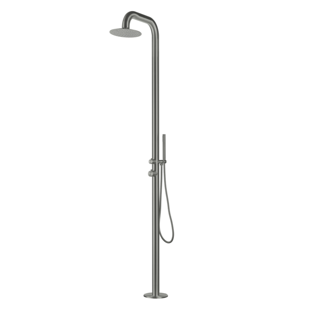 Naturel Douche extérieure en inox 316, eau chaude & froide, grande tête de douche, douchette à main, gun metal (NATUREL-3HGM)