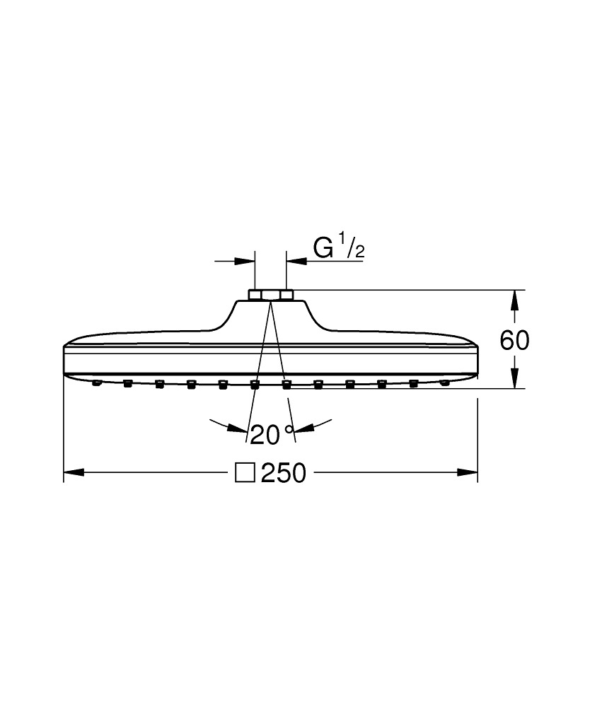 Caractéristiques de la Douche de tête 1 jet, Chrome, Grohe Vitalio Comfort 250 (26695000) :