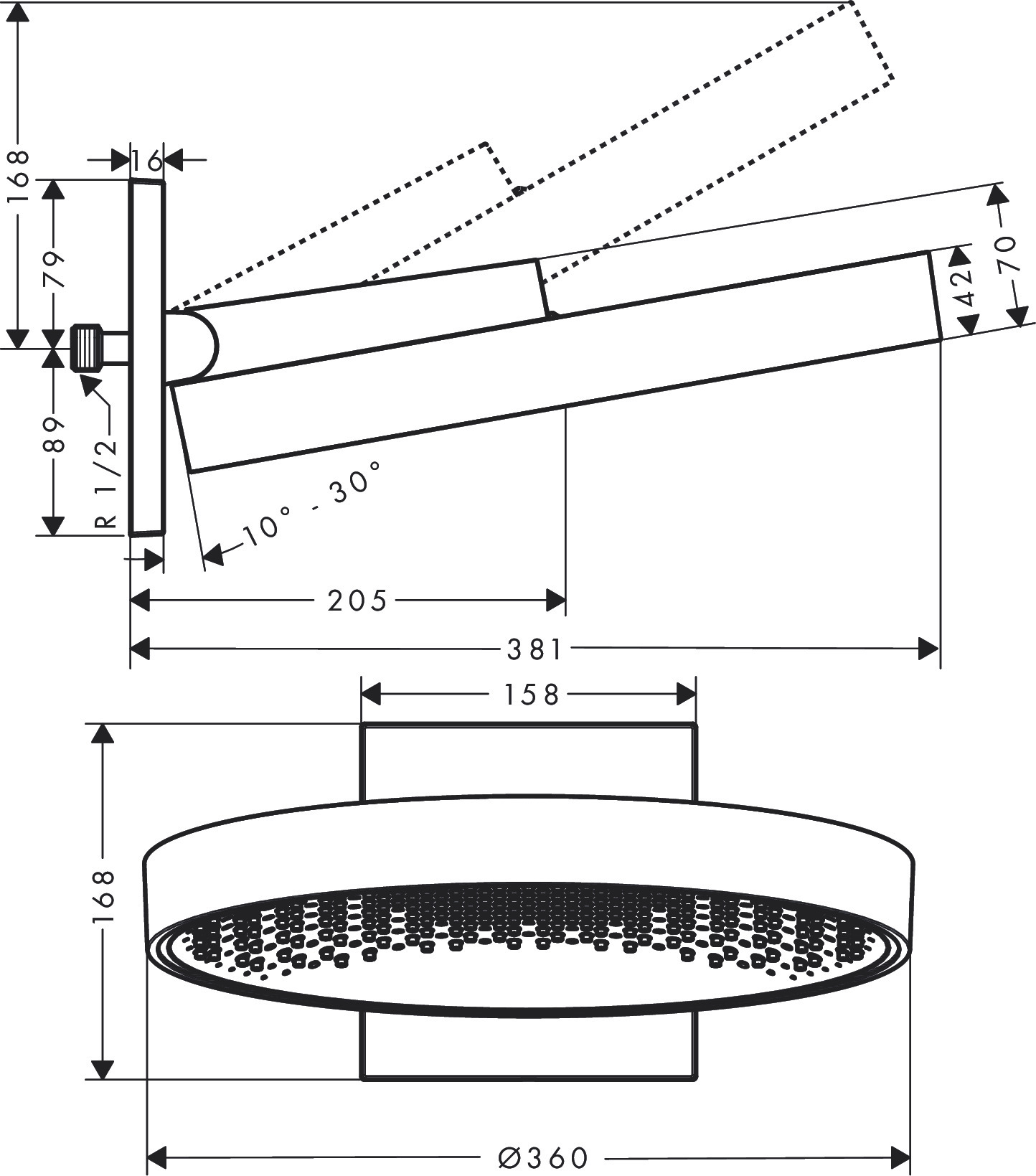 Caractéristiques de la Douche de tête 360 1jet avec raccord mural Hansgrohe Rainfinity (26230000) :