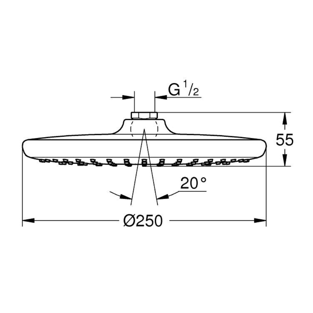 Caractéristiques de la douche de tête 1 jet, Grohe Vitalio Start 250 chrome (26815000) :