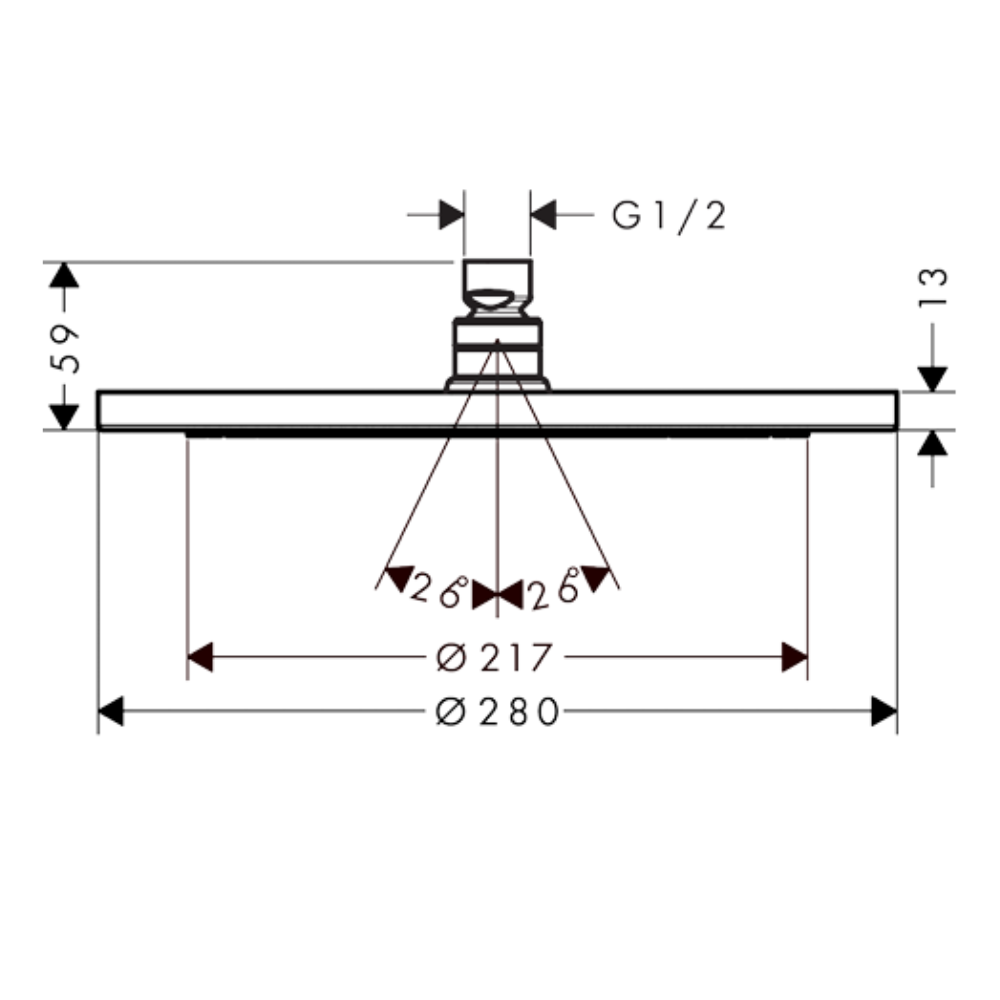 Caractéristiques de la douche de tête 280 1 jet EcoSmart, HansGrohe Croma, bronze brossé (26221140) :