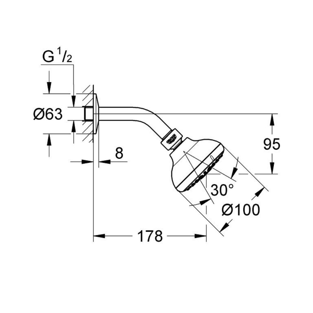 Douche de tête GROHE New Tempesta Classic avec bras de douche – finition chromée (26088001)