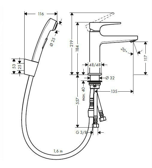 Hansgrohe Metropol Set bidette poignée étrier, bonde Push-Open, chromé (74522000)