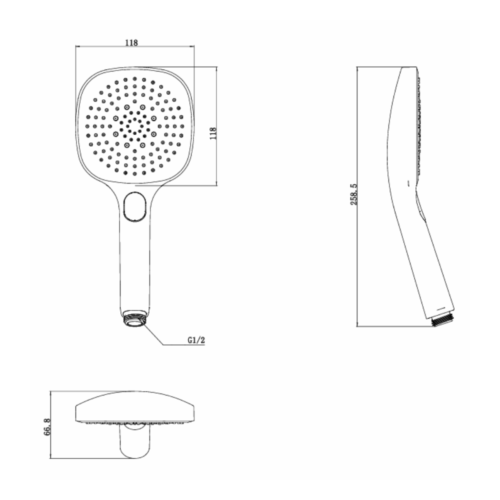 - Types de jets : 1 jet de douche (standard) , 1 courant intense (puissant), 1 flux granulaire (effet gouttes de pluie)