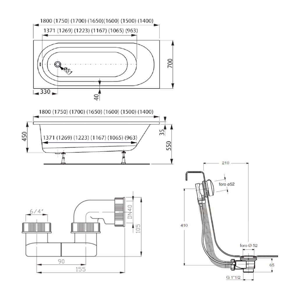 - Vidage baignoire:Fourni