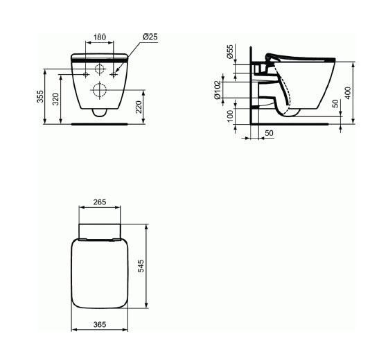 - Cuvette de WC suspendue en porcelaine sanitaire vitrifiée