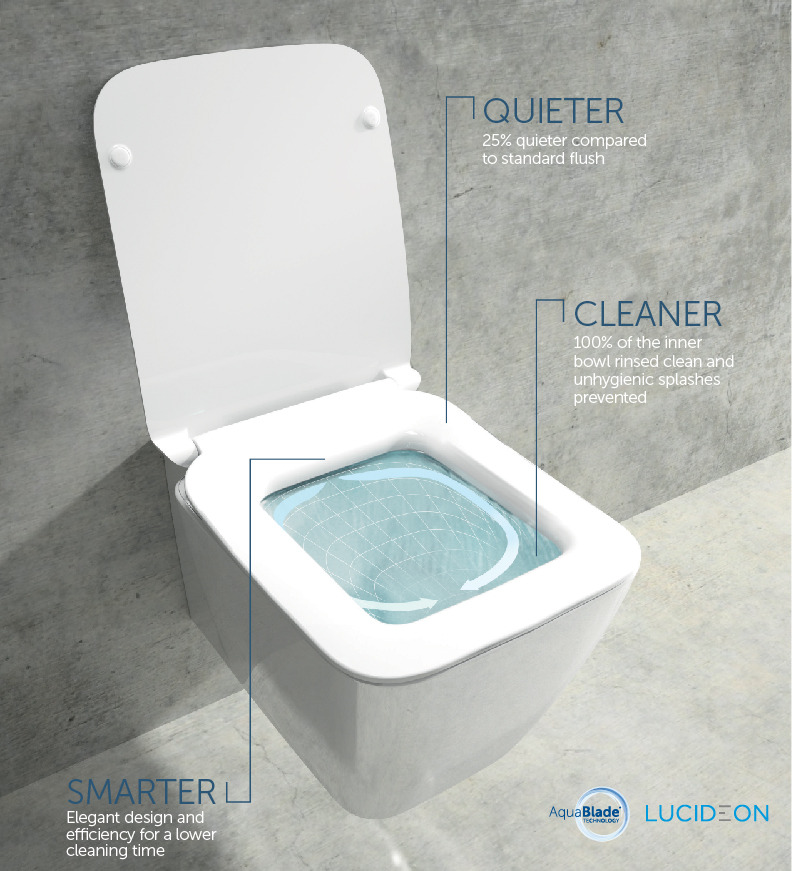 Avec Aquablade, 100 % de la cuvette intérieure nettoyée et la chasse est jusqu’à 62 % plus silencieuse que les concurrentes.