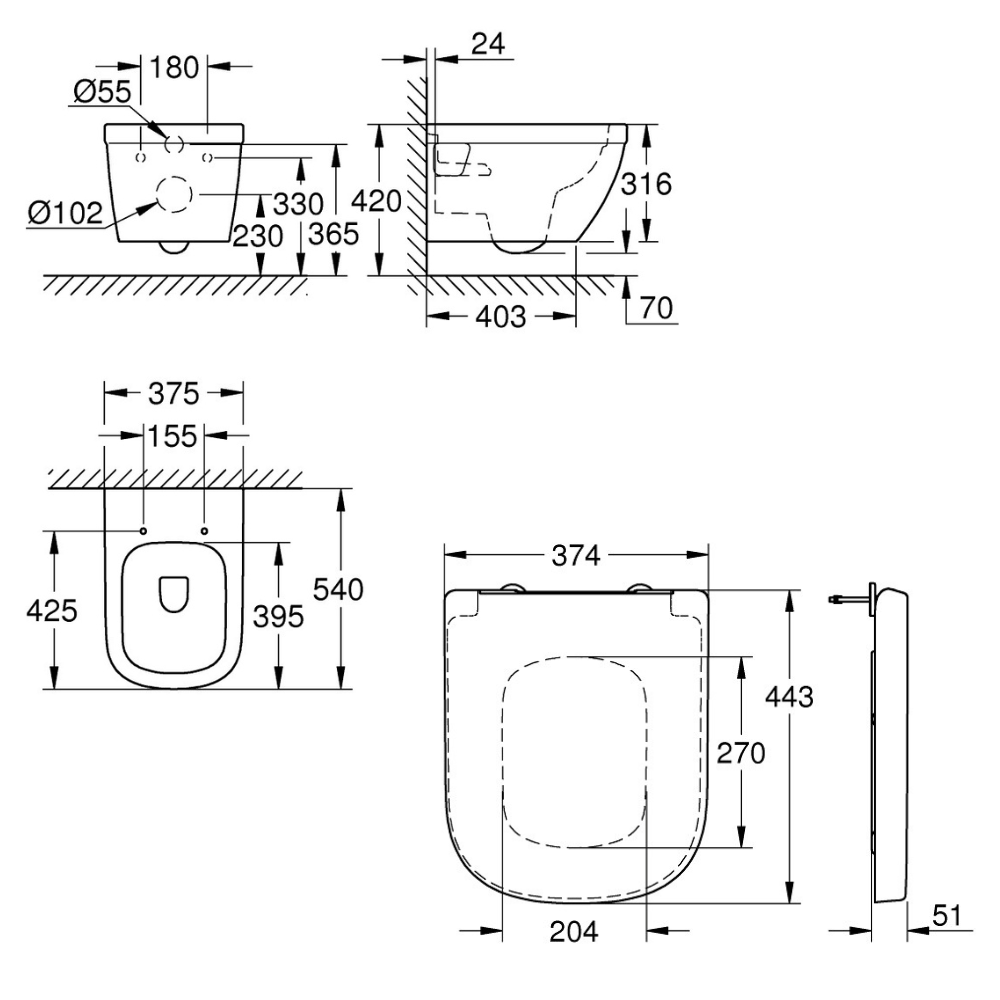 Caractéristiques du set cuvette suspendue avec siège abattant Grohe Euro Ceramic, blanc alpin (39703000) :