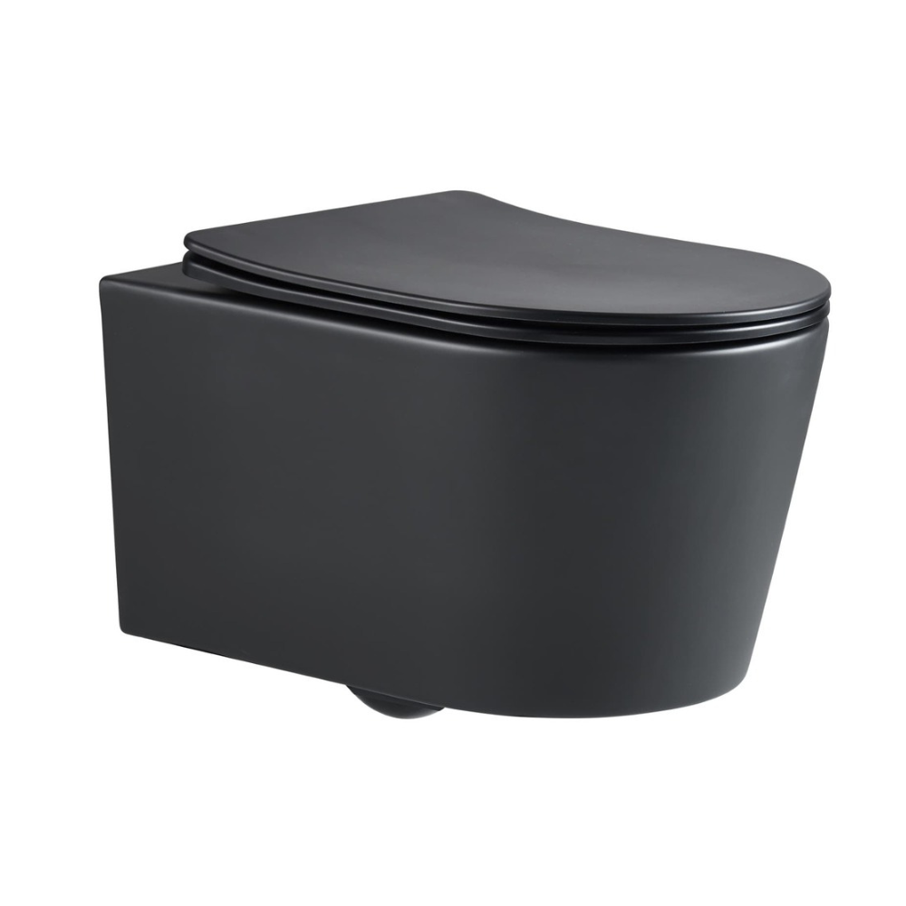 Swiss Aqua Technologies Brevis WC suspendu sans bride et fixations invisibles + abattant frein de chute, noir mat (SATBRE011RREXPBKM)
