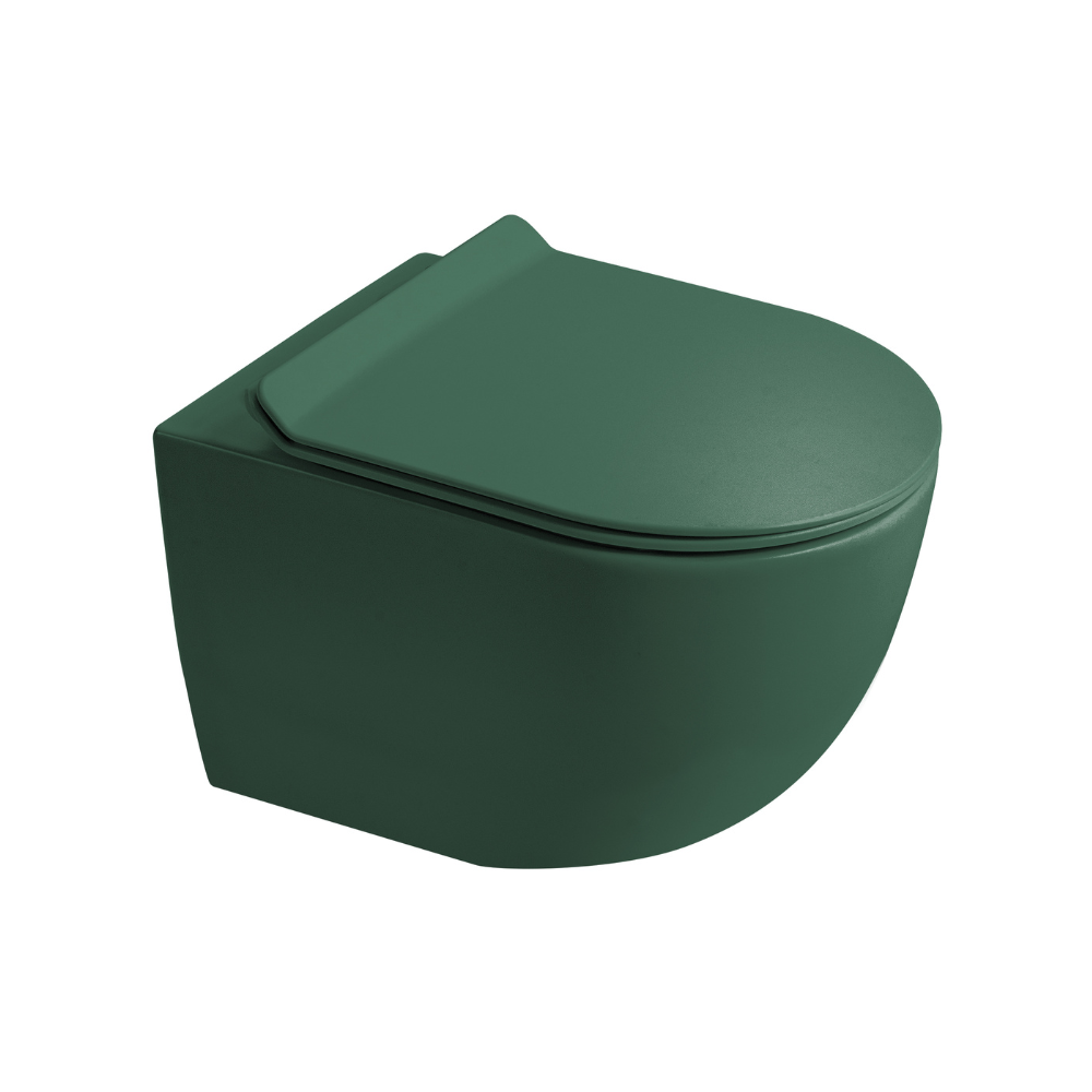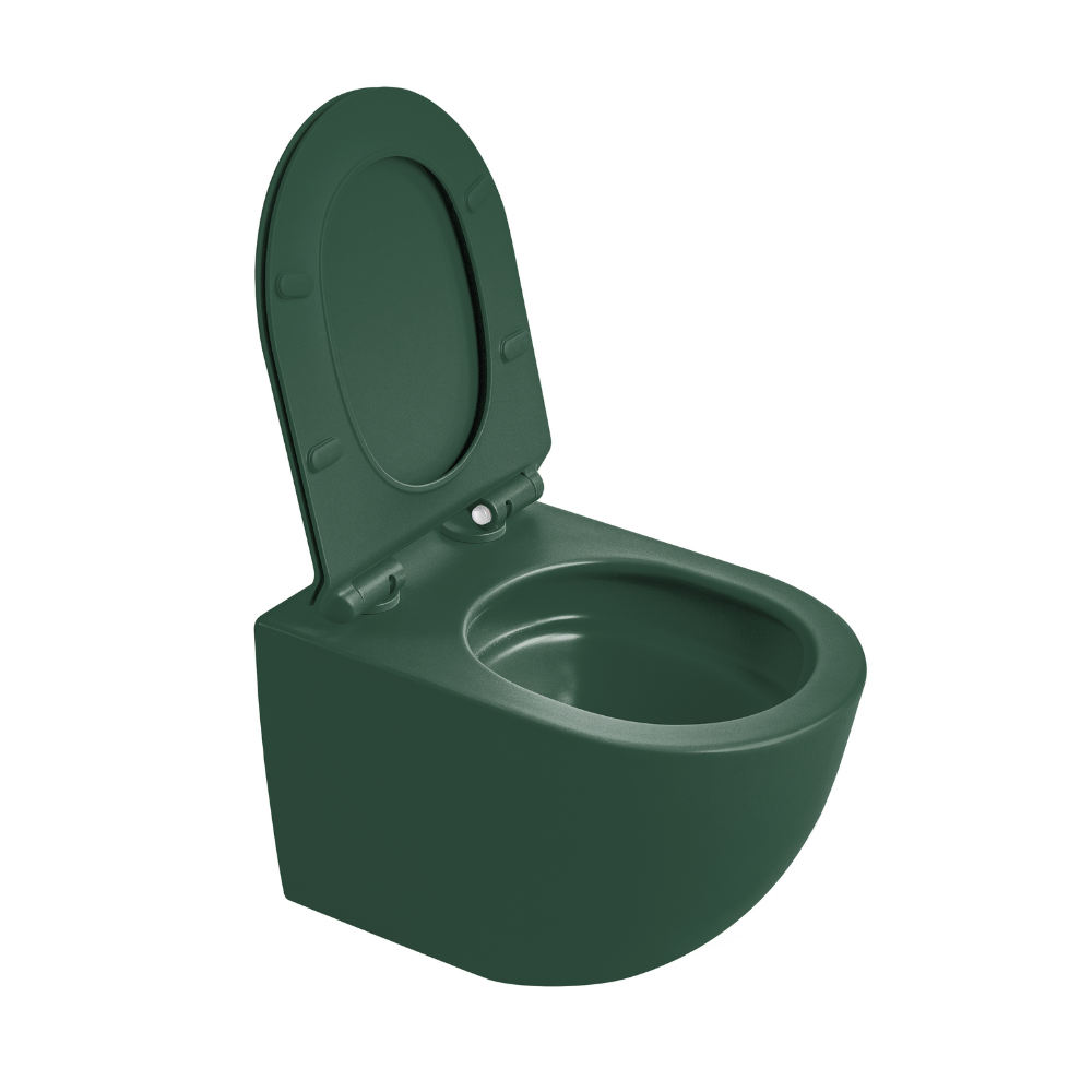 L’abattant Soft-Close se ferme en douceur, sans bruit, et la fonction Quick Release permet de le retirer facilement pour un nettoyage complet. La fixation invisible de la cuvette apporte charme minimaliste, et la finition vert mat ajoute une touche vivante, sophistiquée et pleine de caractère.