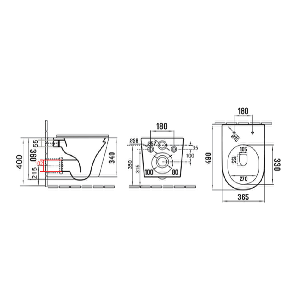 - Hauteur de la cuvette sans abattant : 36 cm