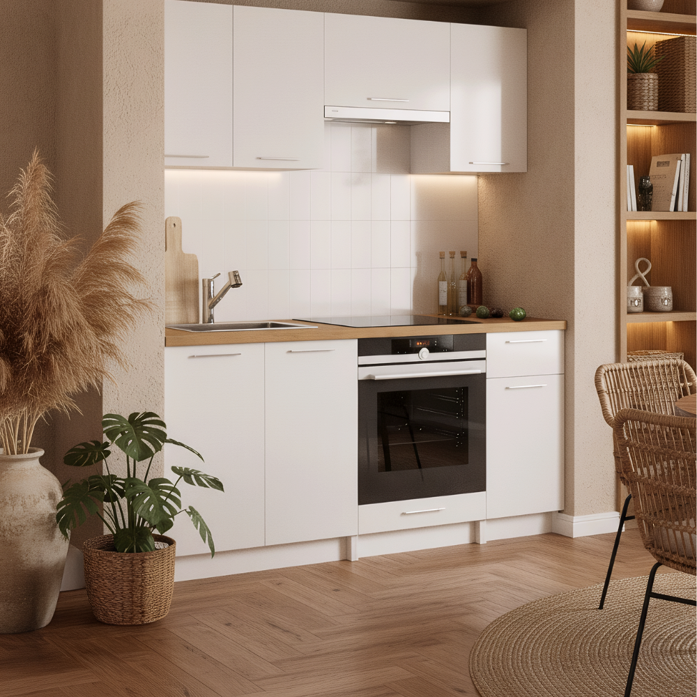 Stylée et pratique, la cuisine Naturel CHILI mesure 1m80 de long et est facile à assembler. Cette cuisine combine qualité et design moderne pour répondre à vos besoins quotidiens.