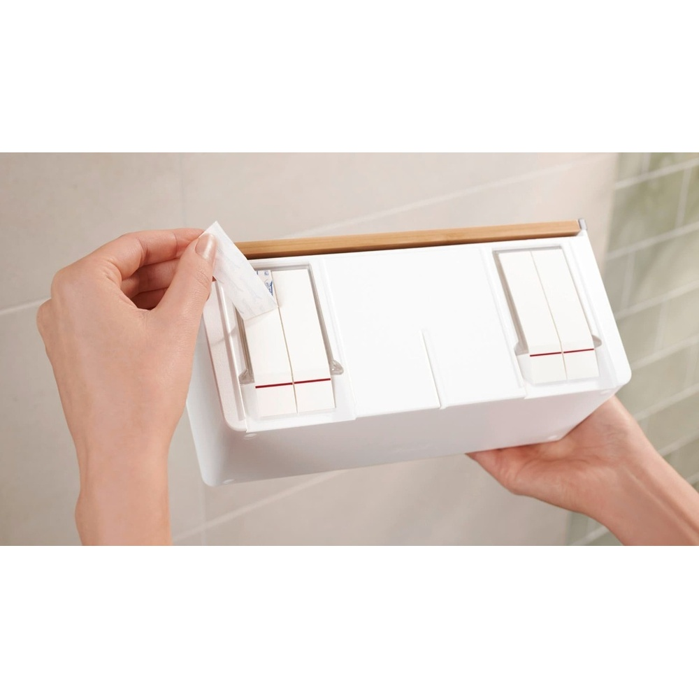 La boîte tesa® Baboo séduit par son système de séparation interne qui permet de garder le contenu bien ordonné. Elle est parfaite pour organiser bijoux, accessoires de beauté et autres petites affaires, et aide efficacement à maintenir l’ordre. Son design moderne, combinant plastique blanc mat et couvercle en bambou naturel, apporte une touche élégante et contemporaine à la salle de bains.