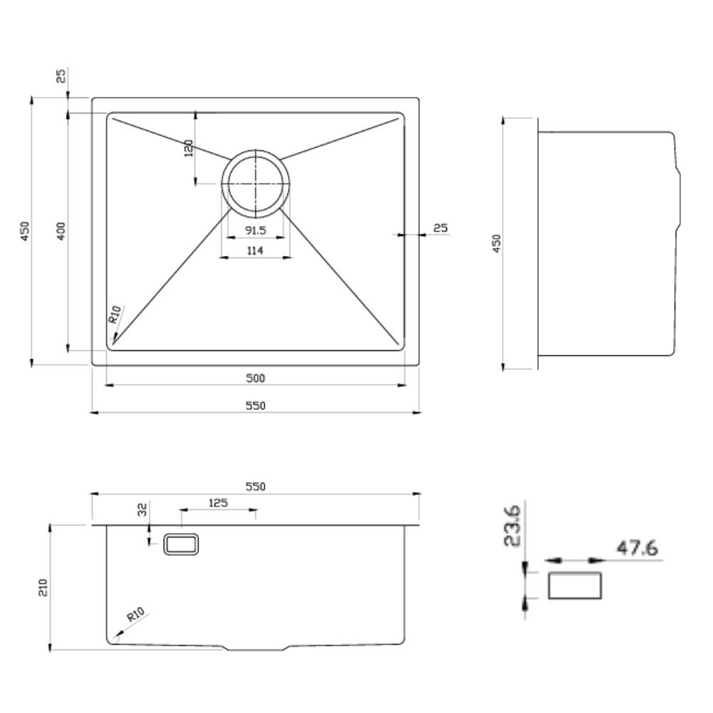 Caractéristiques de l'évier en acier inoxydable, 55x45x21 cm, or rose Swiss Aqua Technologies Aurum (SATSINK5545BRGU) :