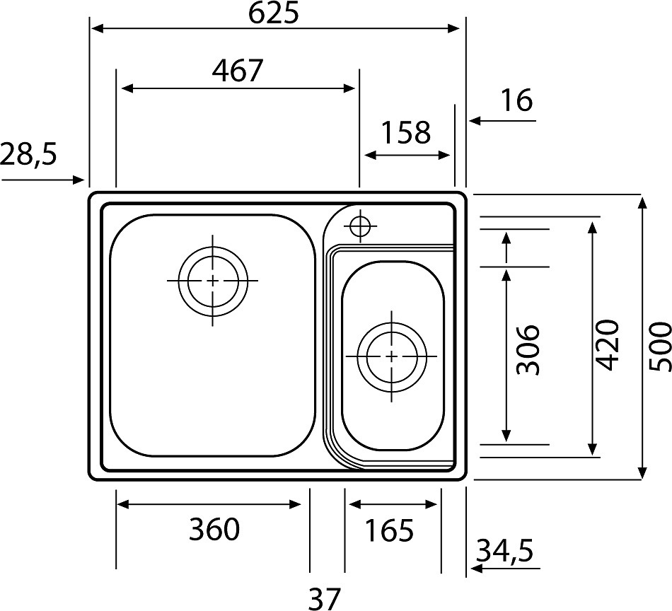 Franke ZODIACO - Inox évier ZOX 660/2, 625x500mm (101.0021.604)