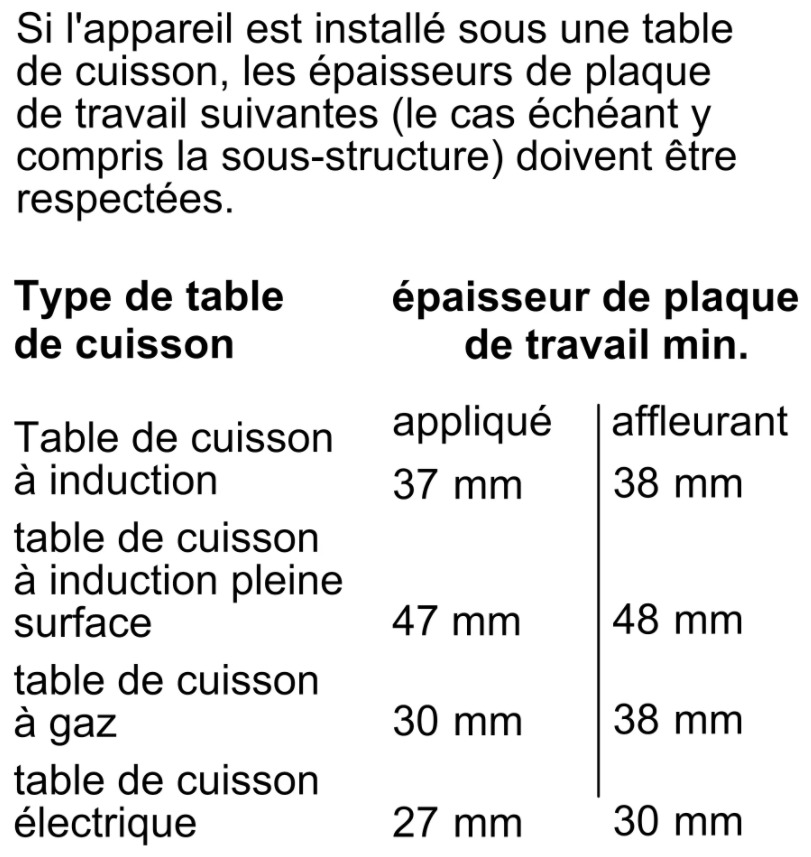 - Hauteur minimum de la niche d'encastrement : 560 mm