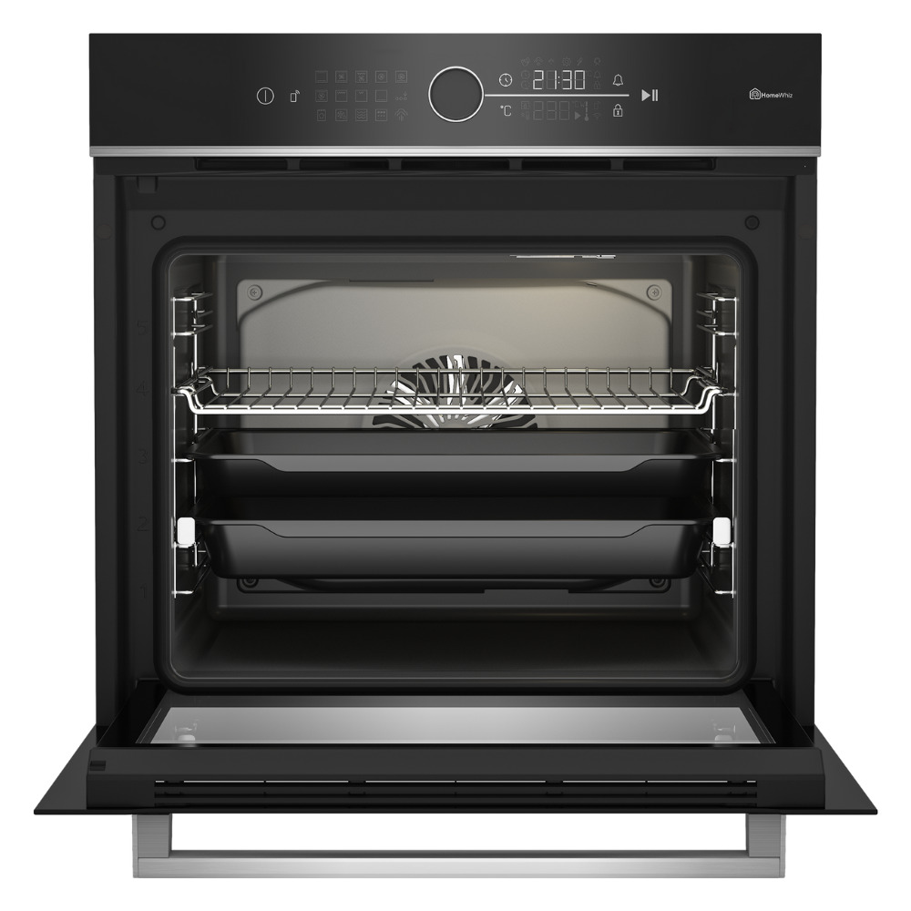 Avec le Wi-Fi et l'application HomeWhiz, vous pouvez préchauffer le four à distance ou télécharger d'autres recettes. La plaque arrière catalytique limite l'accumulation de saletés, et si jamais certaines apparaissent, vous pouvez facilement les éliminer grâce au nettoyage à la vapeur SimpleSteam.