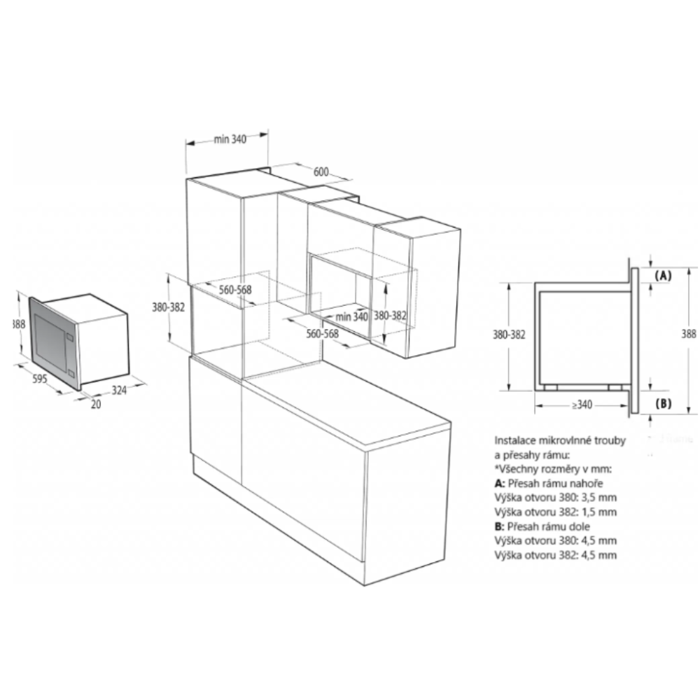 - Le four est adapté pour une installation dans une armoire murale d'une profondeur minimum de 34 cm
