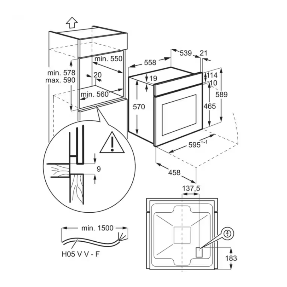 Caractéristiques du four encastrable 65 L, classe A, chaleur tournante pulsée, auto nettoyant AquaClean, Electrolux 600 SurroundCook® , noir (EOF3H50BK) :