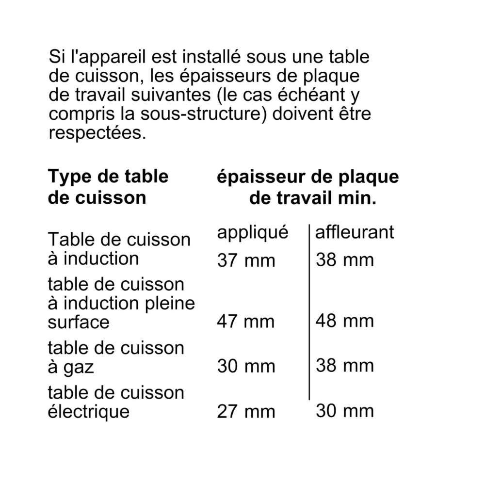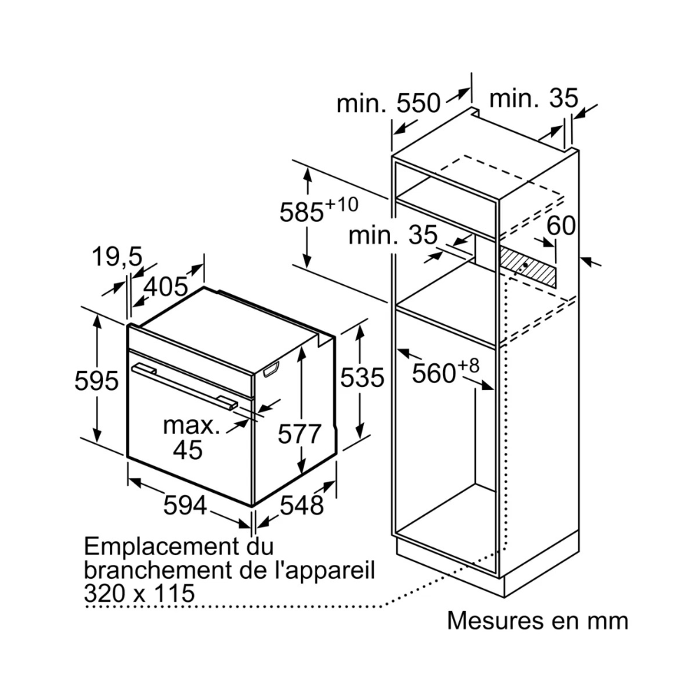 - Profondeur de la niche d'encastrement : 55 cm