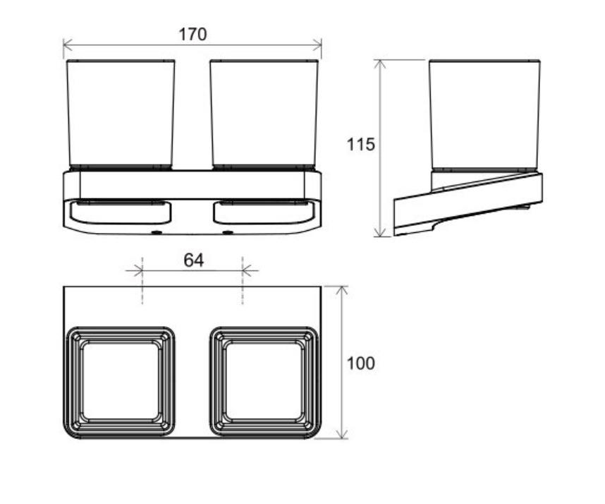 Caractéristiques du 10° Porte brosse à dent 2 verres, fixation murale, en verre dépoli avec support en métal, Chrome, Ravak 10° (X07P322) :