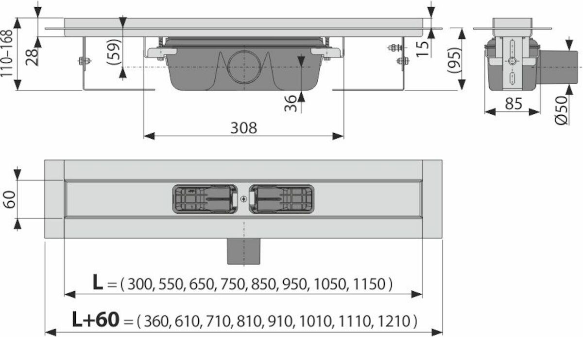 Caractéristiques du Drain de douche avec bord pour grilles complètes Alcaplast APZ26 Professional :