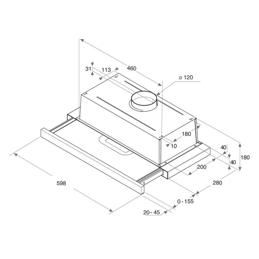 - Type de hotte : A encastrer, télescopique