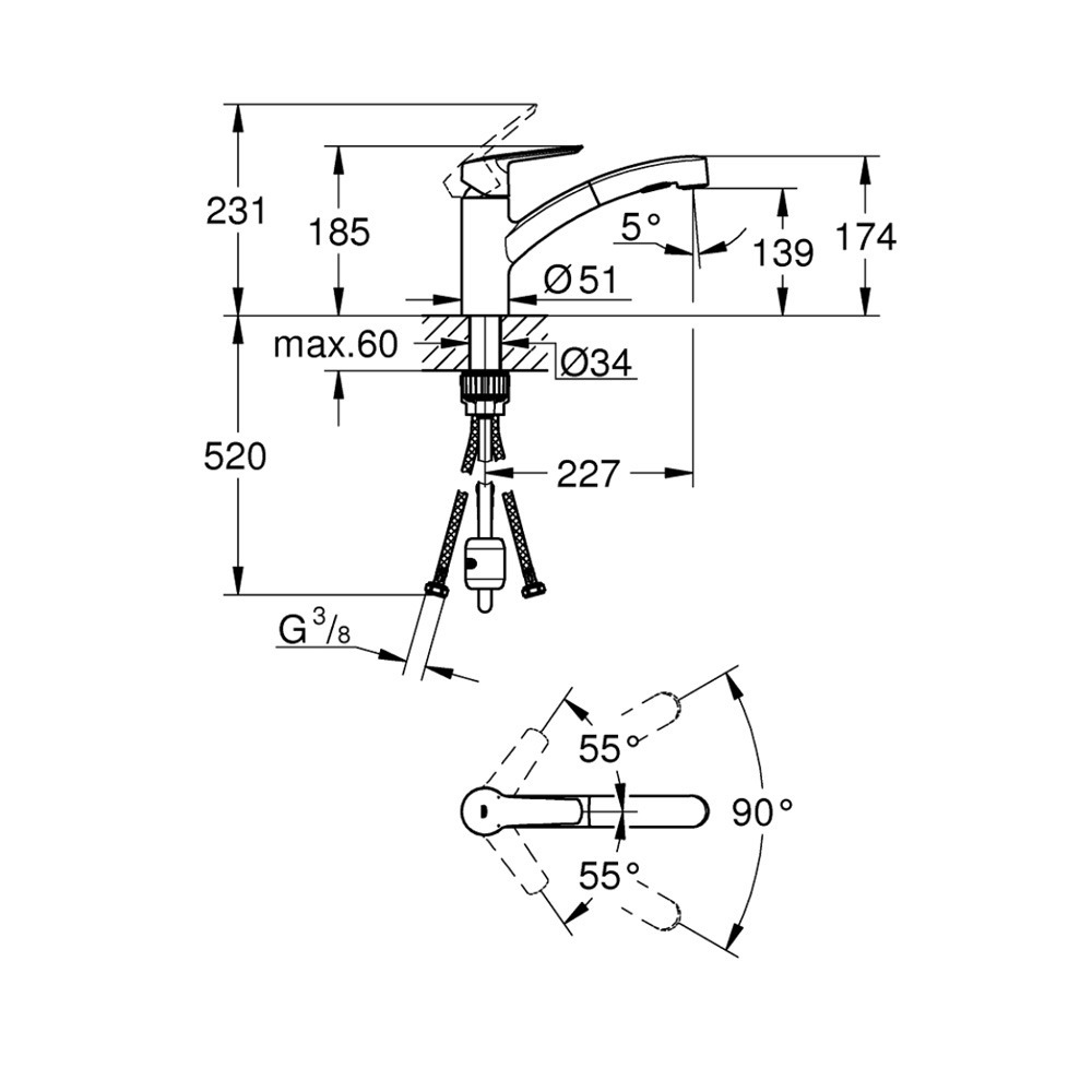 Caractéristiques du START mitigeur monocommande évier avec douchette extractible, noir mat (303072431):