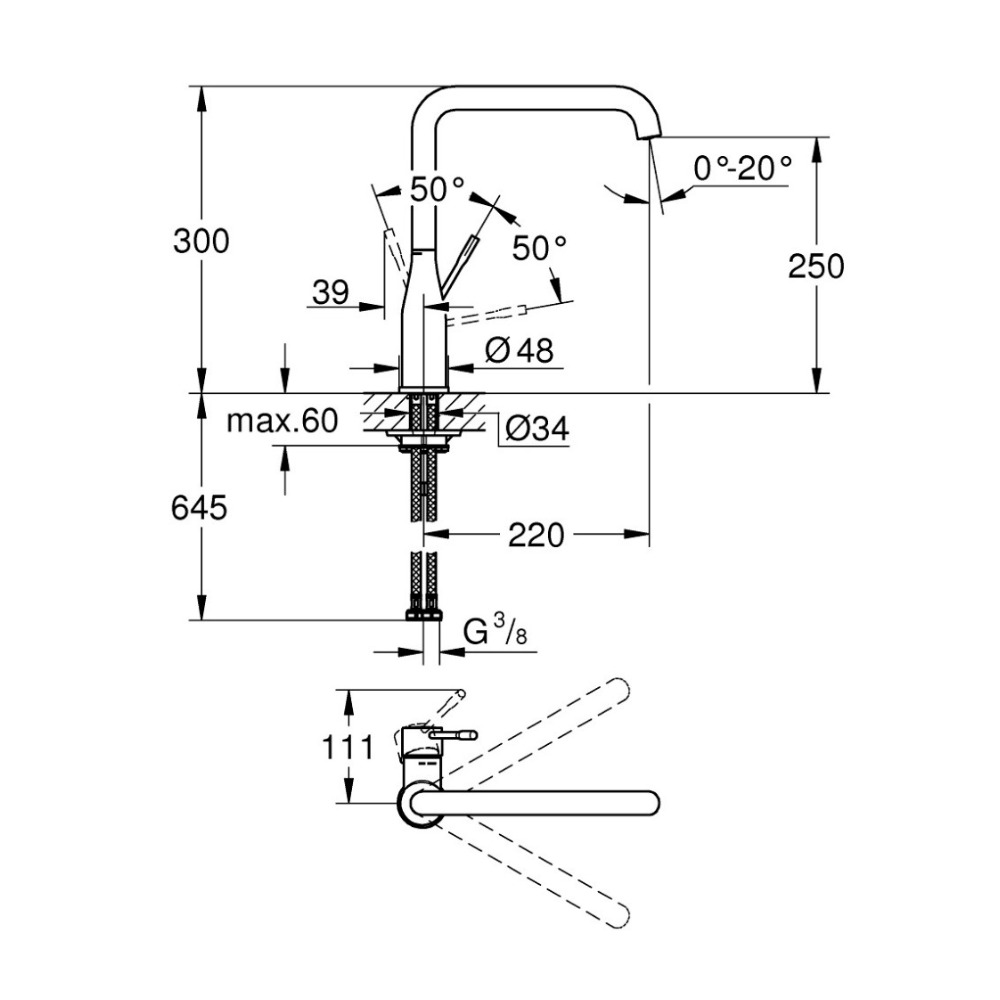 Grohe Caractéristiques de l'Essence Mitigeur monocommande Evier Hard Graphite brossé (30269AL0) :