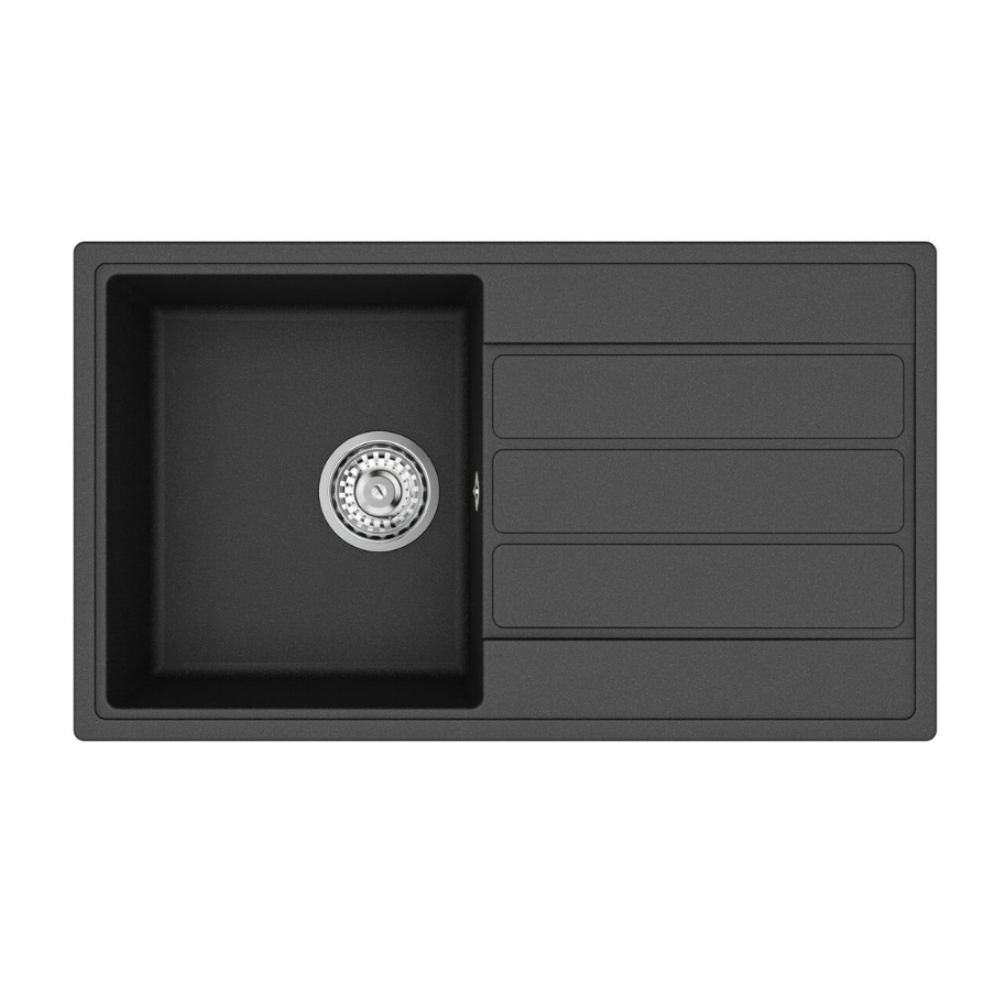 76x44 cm évier avec égouttoir réversible en Granite, à encastrer, noir (SATSINKGE3B) :