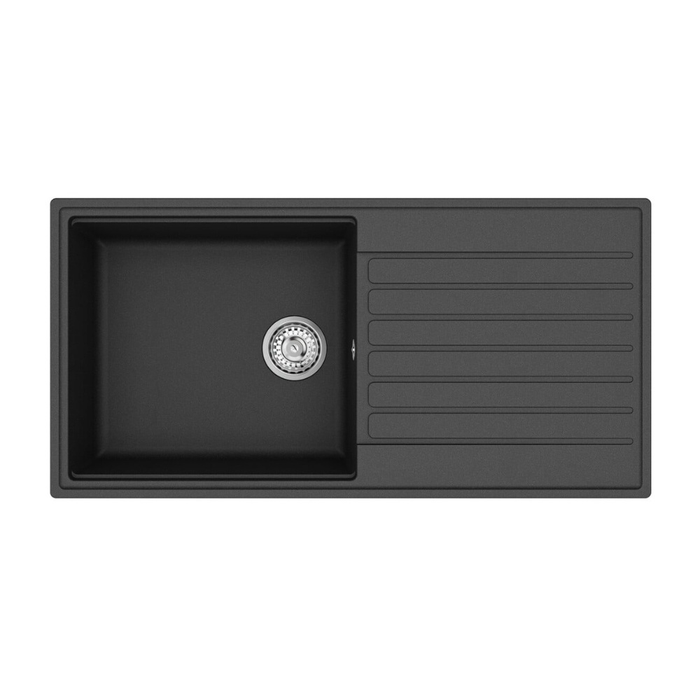 - Swiss Aqua Technologies (SAT) 100x50 cm évier avec égouttoir réversible en Granite, à encastrer, noir (SATSINKGQK103B)