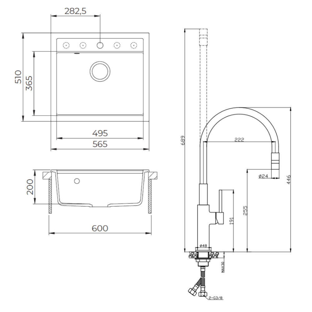 56,5x51cm évier en Granite, à encastrer, jasmin (SATSINKGQQ100J) :