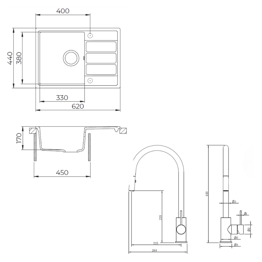 - Dimensions de l'évier : 62x44 cm