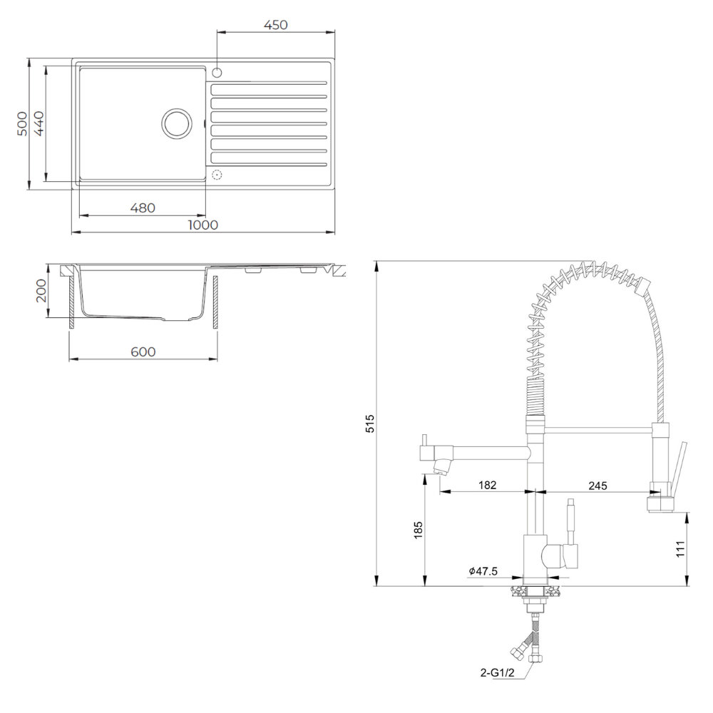 - Dimensions de l'évier : 100x50 cm